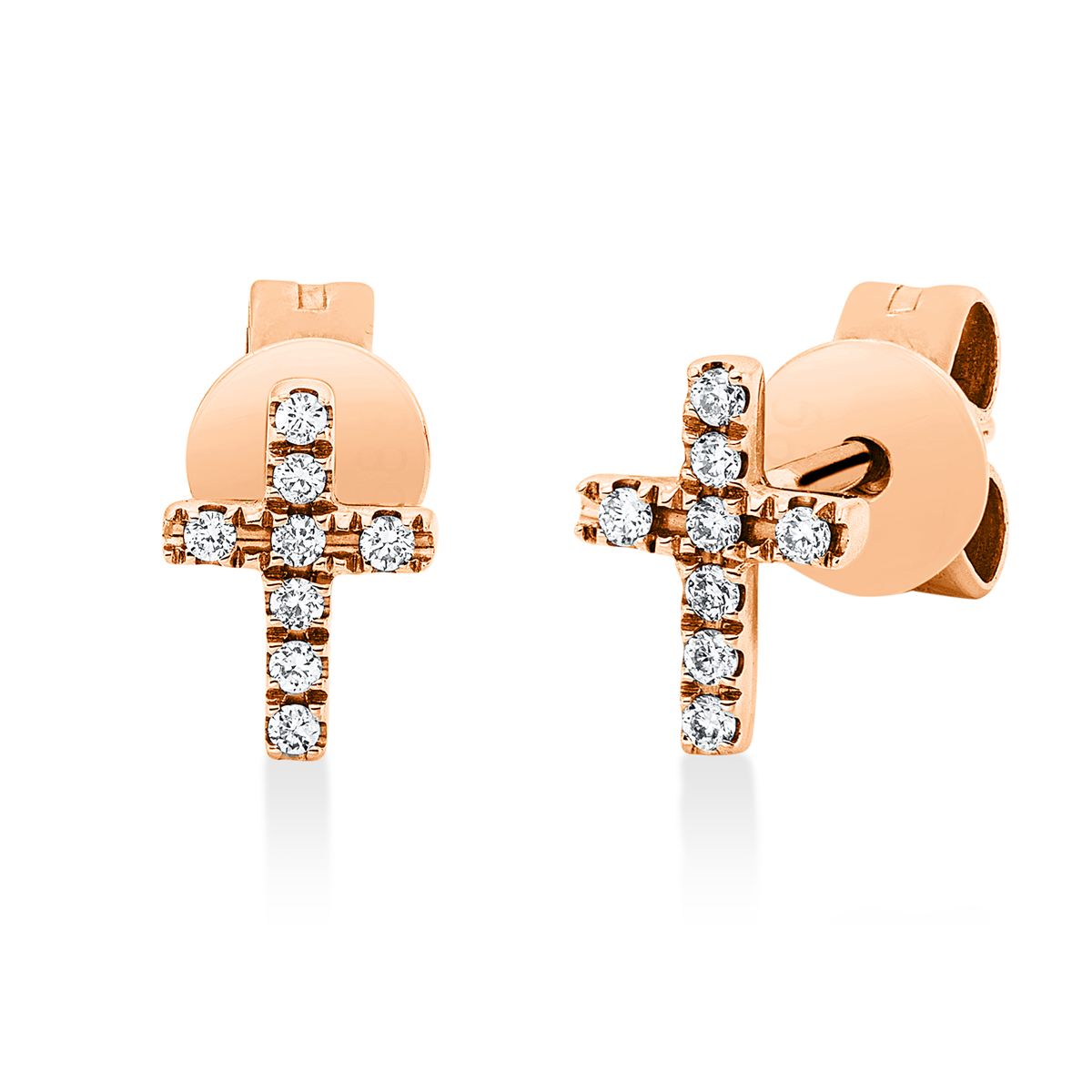 Ohrstecker 14 kt RG Kreuz, 16 Brillanten 0,07 ct, W-si, H:6,7 mm, B:4,8 mm, S:1,3 mm