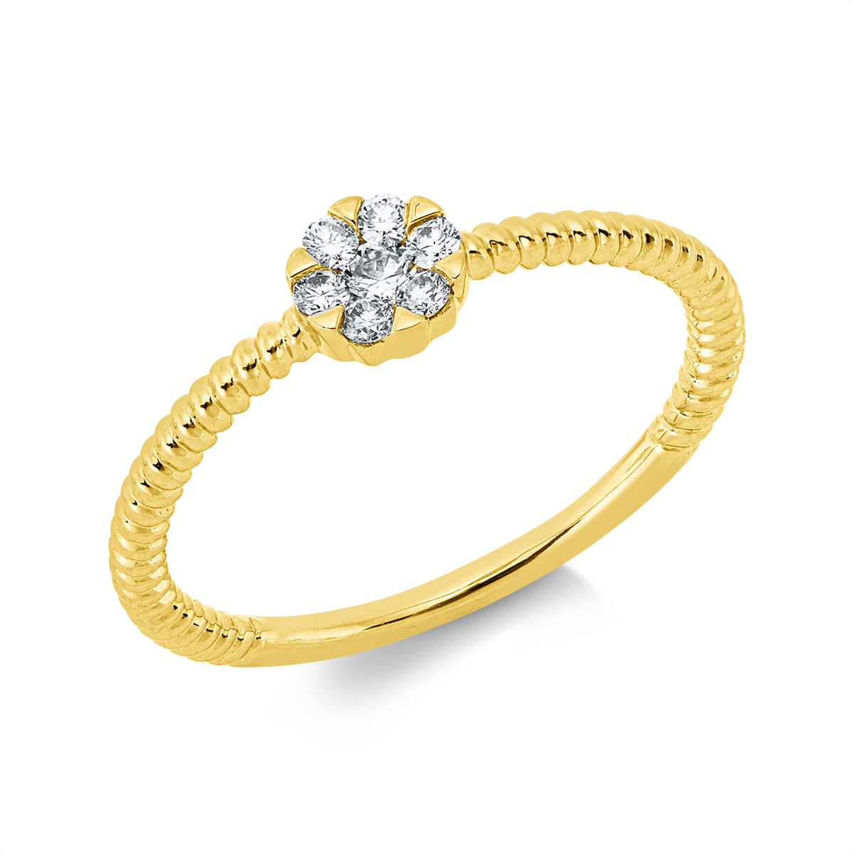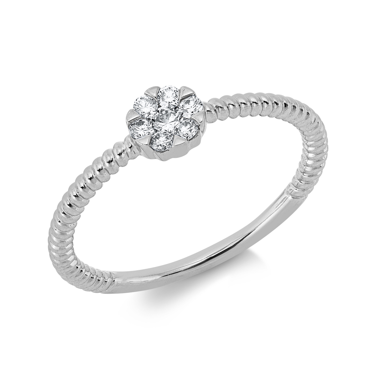 Ring 18 kt GG, 1 Brill. 0,05 ct, TW-si, 6 Brillanten 0,09 ct, TW-si, H:4,9 mm, B:4,7 mm, Weite:54