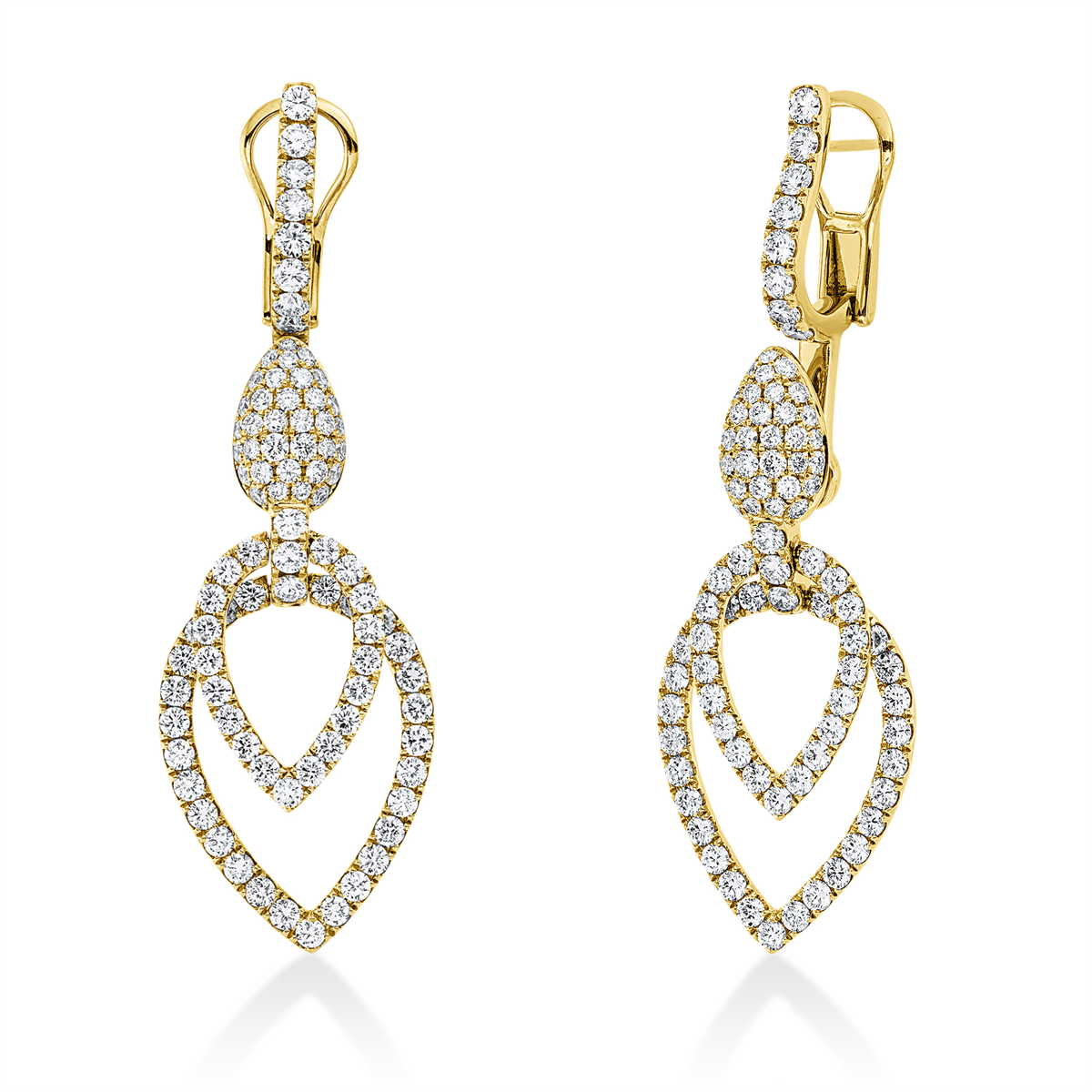 Ohrschmuck 18 kt GG, 182 Brillanten 5,12 ct, TW-vsi