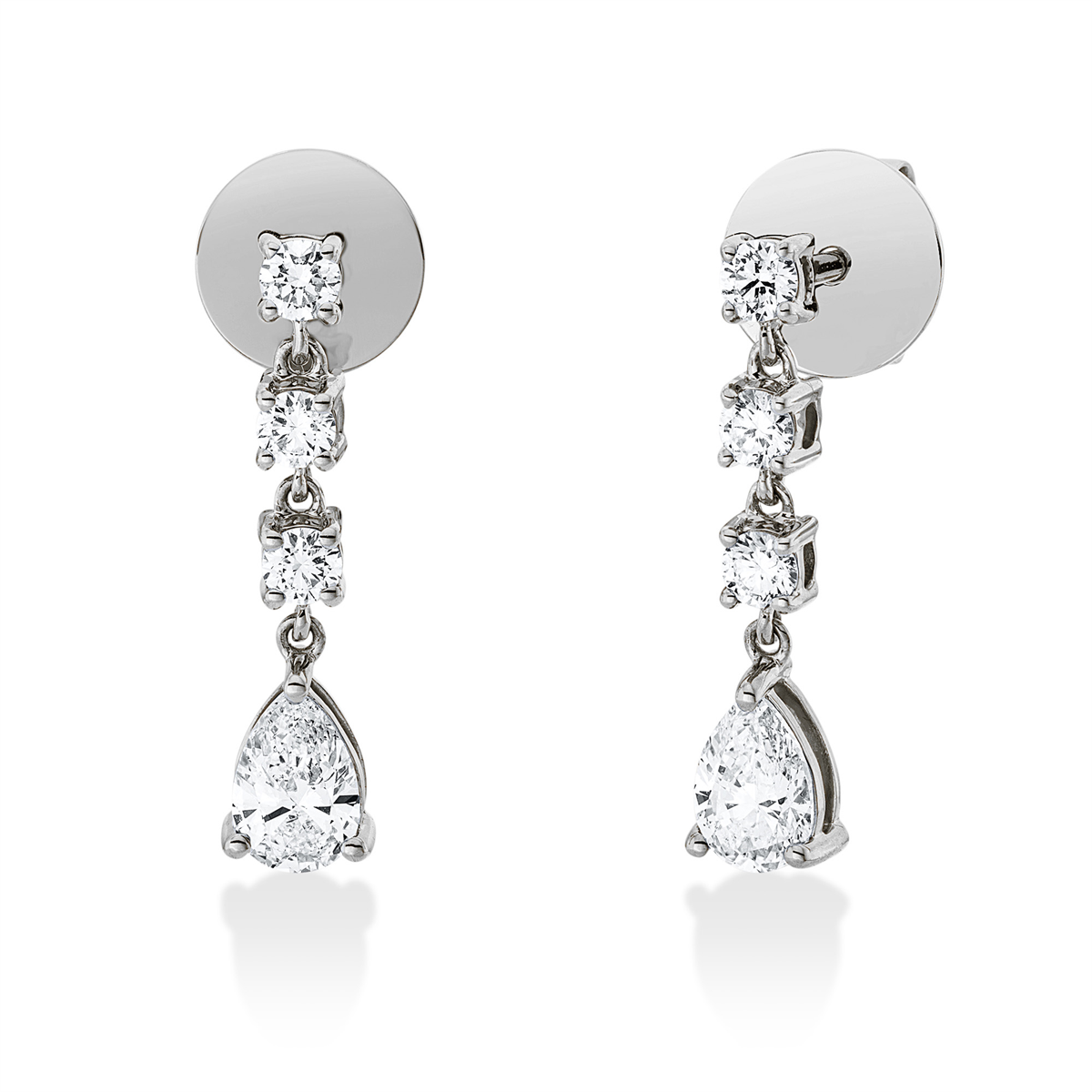 Ohrschmuck 18 kt GG, 2 Tropfen 0,61 ct, TW-si, 6 Brillanten 0,32 ct, TW-si, H:19,0 mm, B:4,6 mm, S:3,0 mm