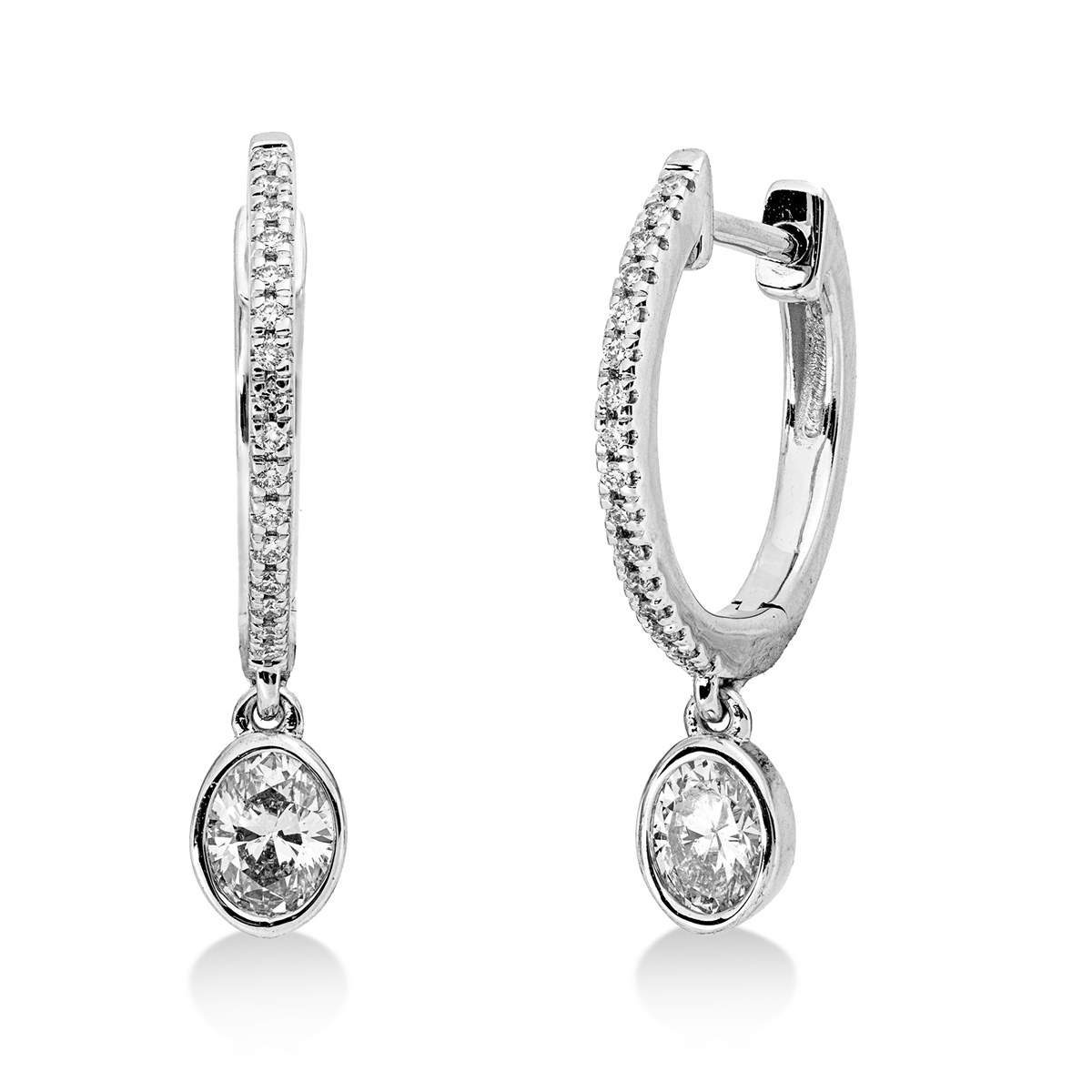 Ohrschmuck 18 kt GG, 32 Brillanten 0,09 ct, TW-si, 2 Oval 0,40 ct, TW-si, H:20,3 mm, B:14,4 mm, S:4,2 mm