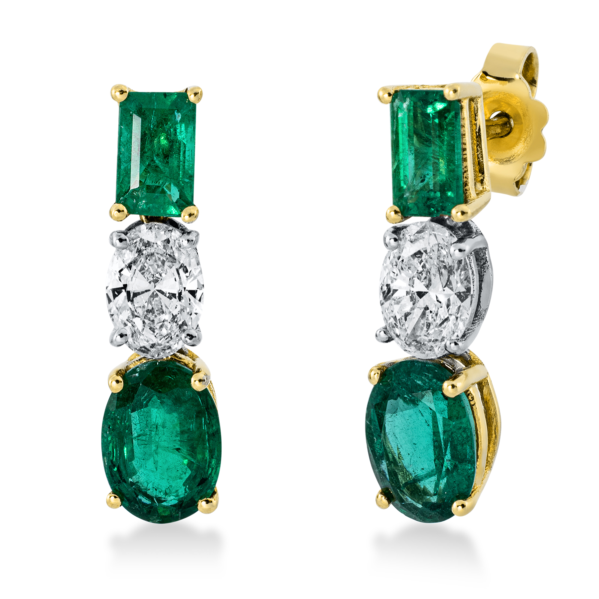 Ohrschmuck 18 kt GG, 2 Fant-Schl. 0,70 ct, TW-si, 4 Smaragde 1,94 ct grün