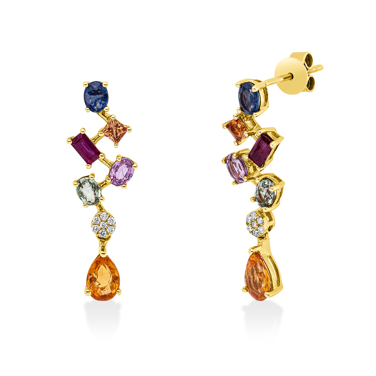 Ohrschmuck 18 kt GG, 14 Brillanten 0,05 ct, TW-si, 2 Saphire 0,20 ct fancy, 2 Saphire 0,37 ct fancy, 2 Saphire 1,09 ct fancy, 6 Saphire 1,20 ct fancy