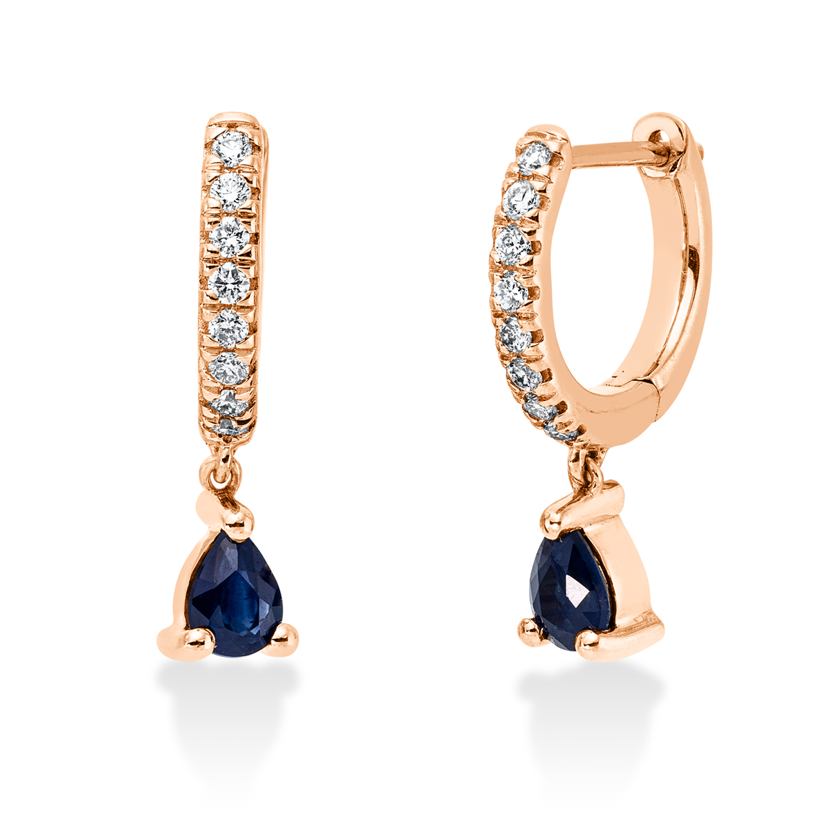 Ohrschmuck 18 kt GG, 16 Brillanten 0,12 ct, TW-si, 2 Saphire 0,41 ct blau