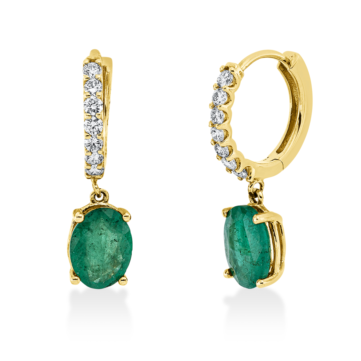 Ohrschmuck 18 kt GG, 14 Brillanten 0,31 ct, TW-si, 2 Smaragde 2,23 ct grün