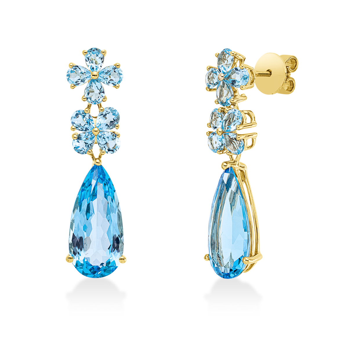 Ohrschmuck 18 kt GG, 2 Topase 11,10 ct blau, 16 Topase 3,10 ct blau