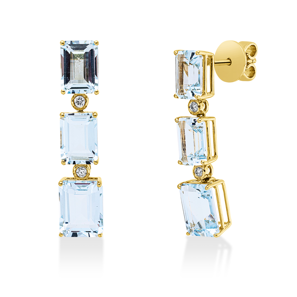Ohrschmuck 18 kt GG, 4 Brillanten 0,07 ct, TW-si, 6 Topase 8,60 ct sky blue