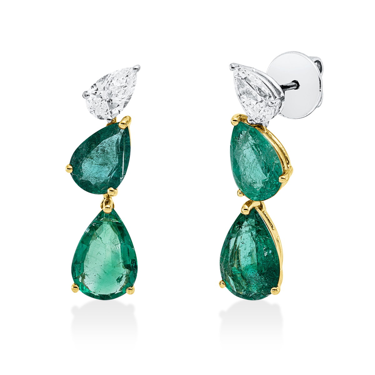 Ohrschmuck 18 kt GG+WG, GIA6521363205,GIA252606082, 1 Tropfen 0,70 ct, TW-vs2, 1 Tropfen 0,70 ct, TW-vs2, 2 Smaragde 4,48 ct grün, 2 Smaragde 3,19 ct grün