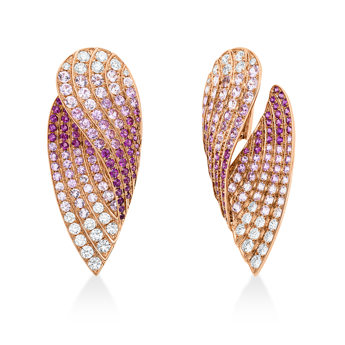 Ohrschmuck 18 kt RG, 36 Brillanten 2,04 ct, TW-vsi/si, 206 Saphire 7,87 ct pink