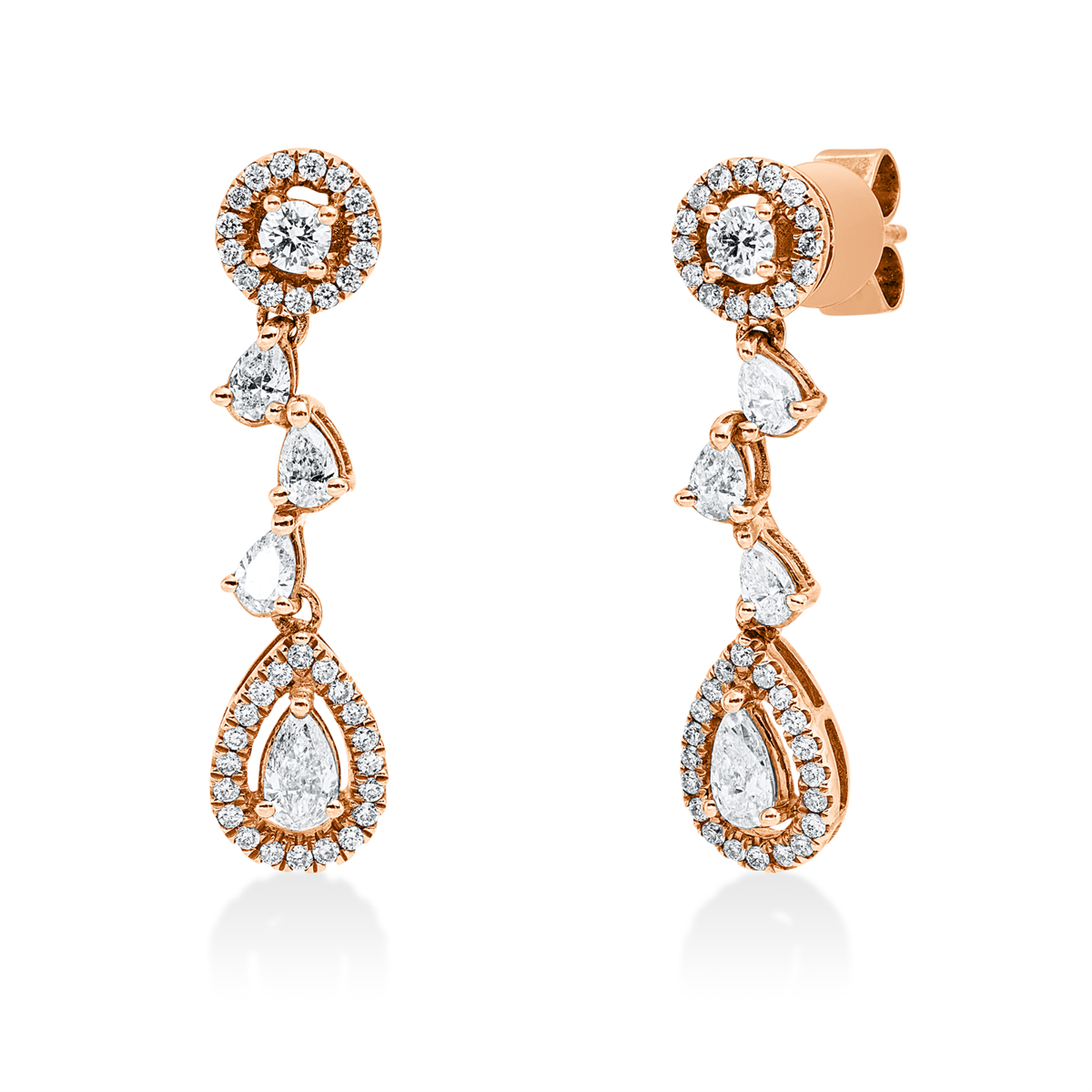 Ohrschmuck 18 kt RG, 8 Tropfen 0,67 ct, TW-vsi, 72 Brillanten 0,40 ct, TW-si, H:26,6 mm, B:6,7 mm, S:3,9 mm