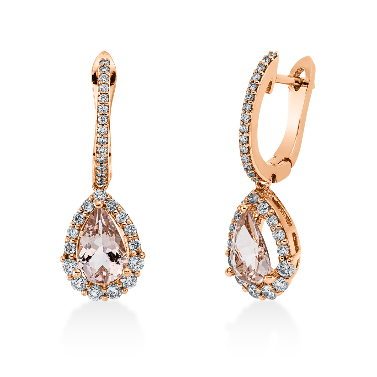 Ohrschmuck 18 kt RG Tropfen, 60 Brillanten 0,51 ct, TW-si, 2 Morganit 1,18 ct rosé, H:24,4 mm, B:8,3 mm, S:5,4 mm
