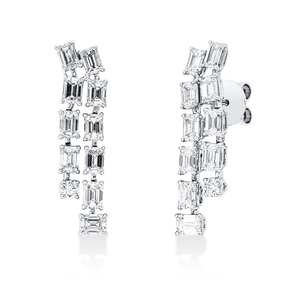 Ohrschmuck 18 kt WG, 20 Sm.schliff 3,17 ct, F-vsi, 2 Brillanten 0,13 ct, F-vsi, H:25,0 mm, B:5,8 mm, S:3,5 mm