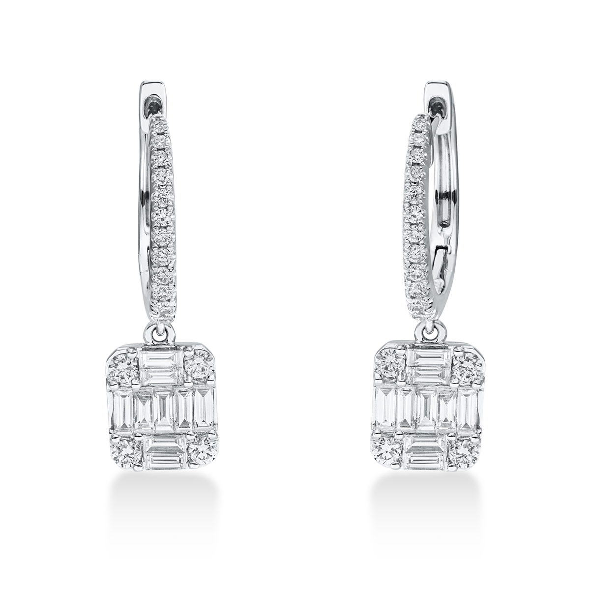 Ohrschmuck 18 kt WG, 18 Brillanten 0,09 ct, TW-si, 18 Baguette 0,43 ct, TW-si, 16 Brillanten 0,25 ct, TW-si, H:21,7 mm, B:6,4 mm, S:3,2 mm