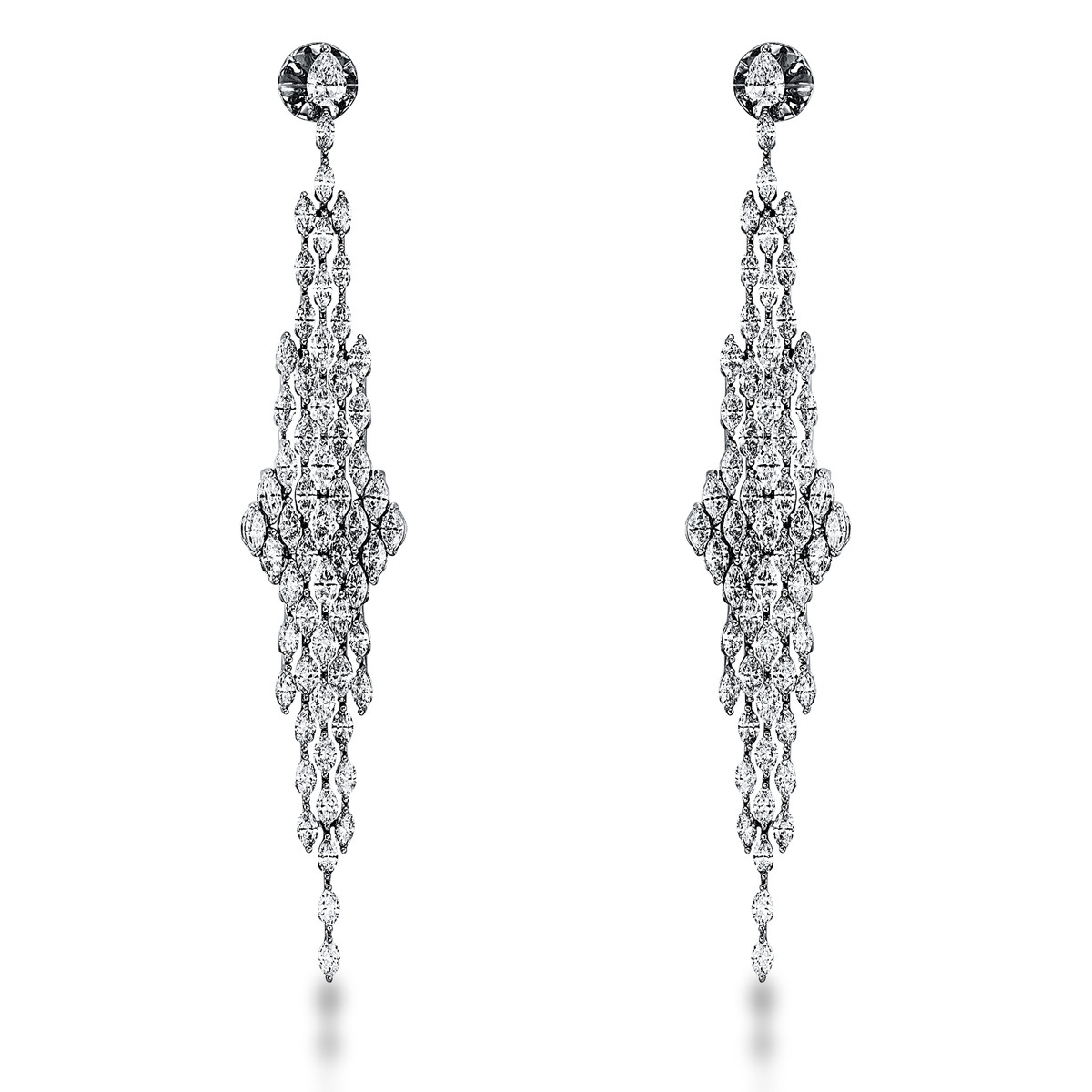Ohrschmuck 18 kt WG, 120 Navette 15,53 ct, TW-vsi/si, 2 Tropfen 1,03 ct, TW-vsi/si