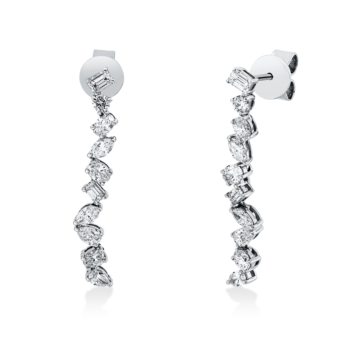 Ohrschmuck 18 kt WG, 2 Brillanten 0,08 ct, TW-si, 18 Fant-Schl. 1,01 ct, TW-si