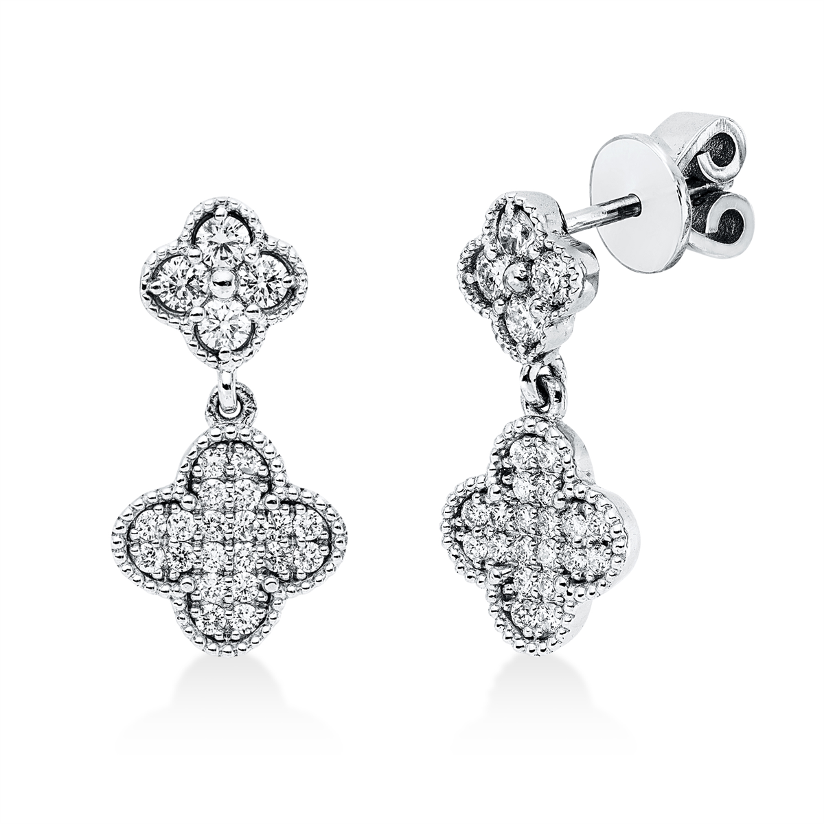 Ohrschmuck 18 kt WG, 8 Brillanten 0,29 ct, F-si, 40 Brillanten 0,27 ct, F-si