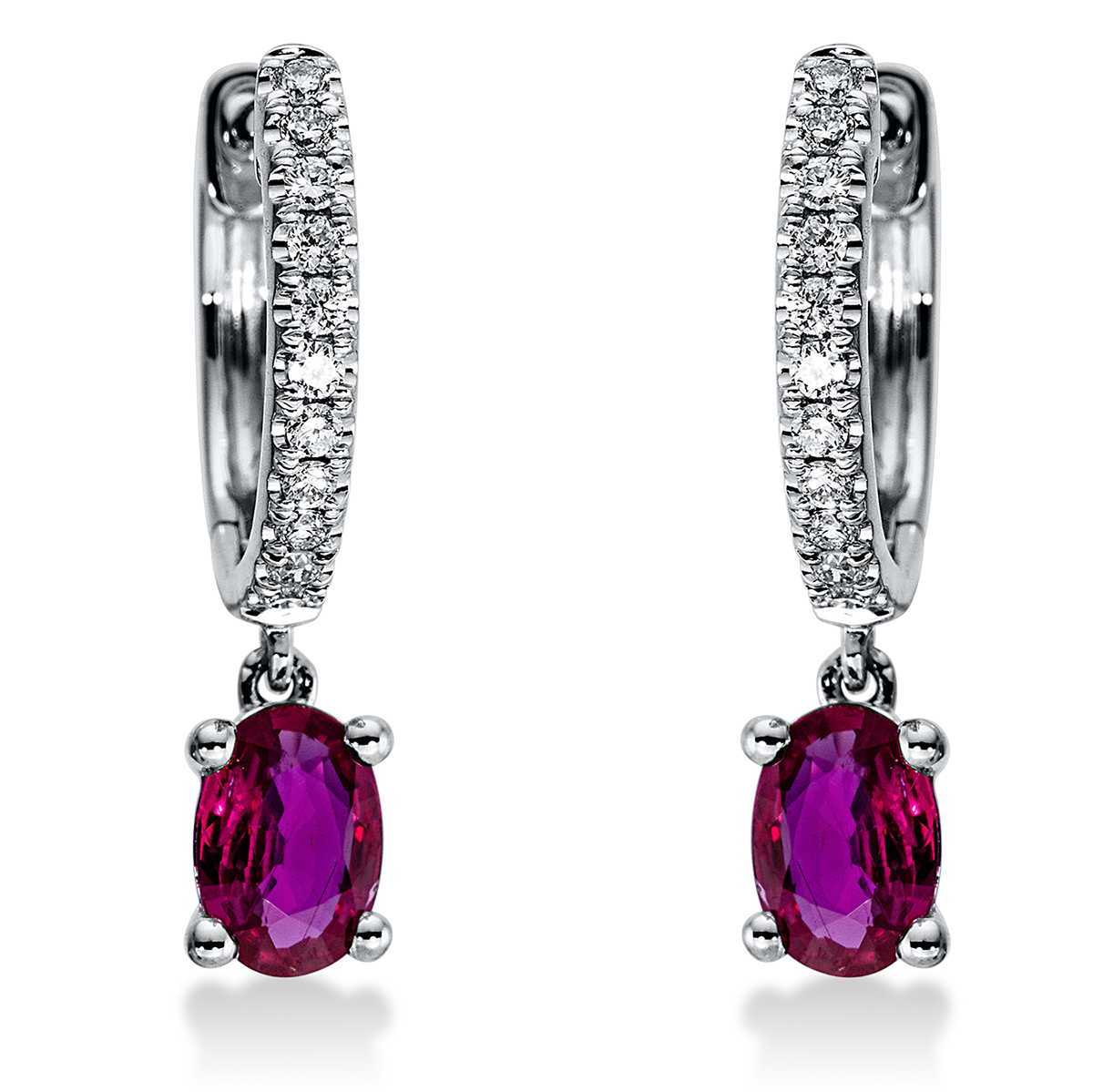 Ohrschmuck 18 kt WG, 22 Brillanten 0,15 ct, TW-si, 2 Rubine 0,99 ct rot