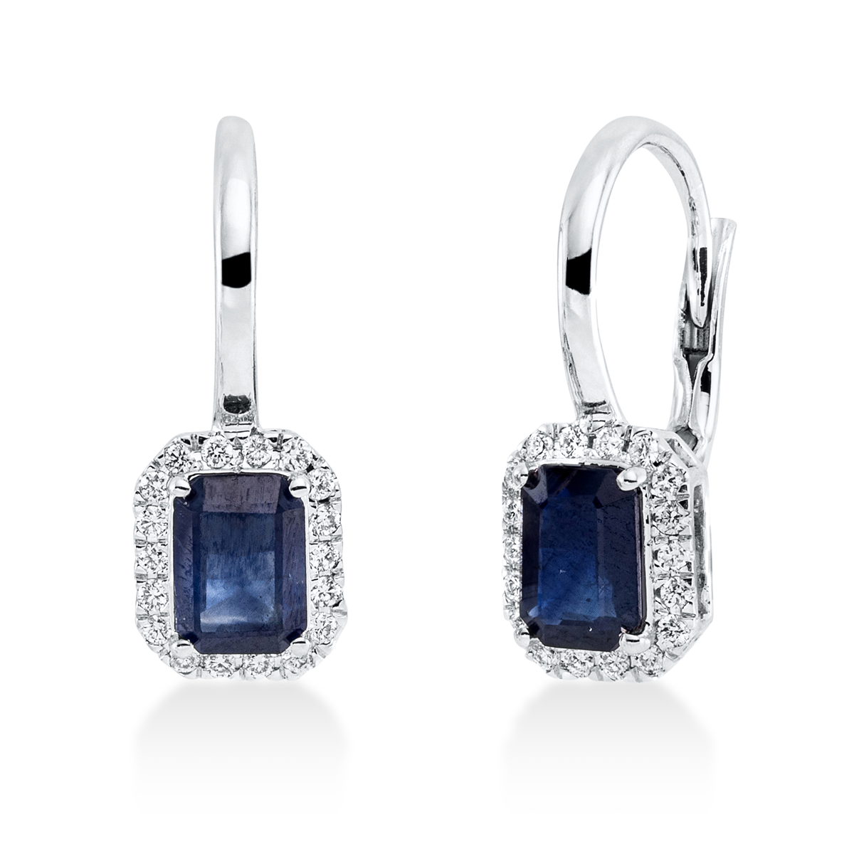 Ohrschmuck 18 kt WG, 36 Brillanten 0,25 ct, TW-si, 2 Saphire 1,80 ct blau