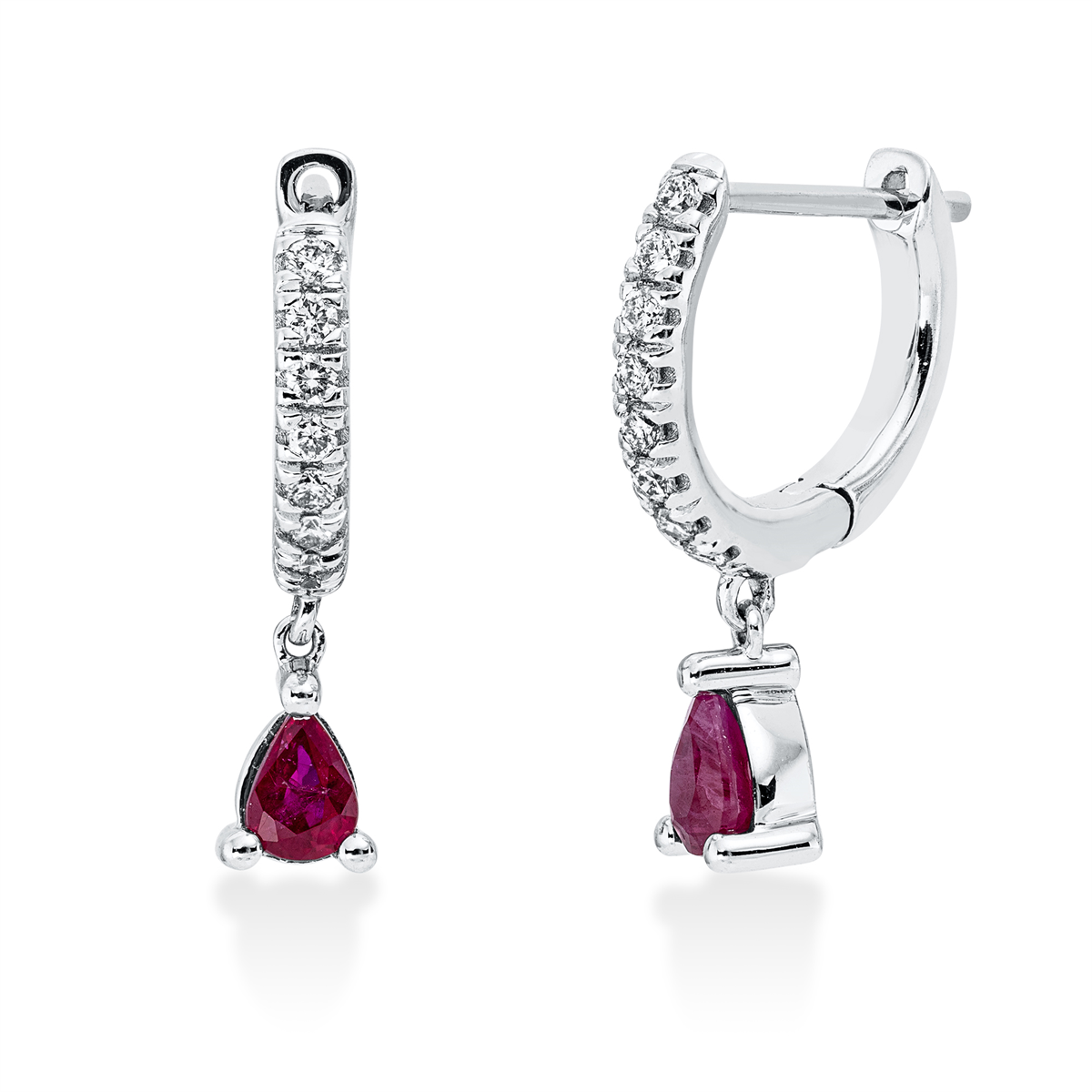 Ohrschmuck 18 kt WG, 16 Brillanten 0,12 ct, TW-si, 2 Rubine 0,41 ct rot