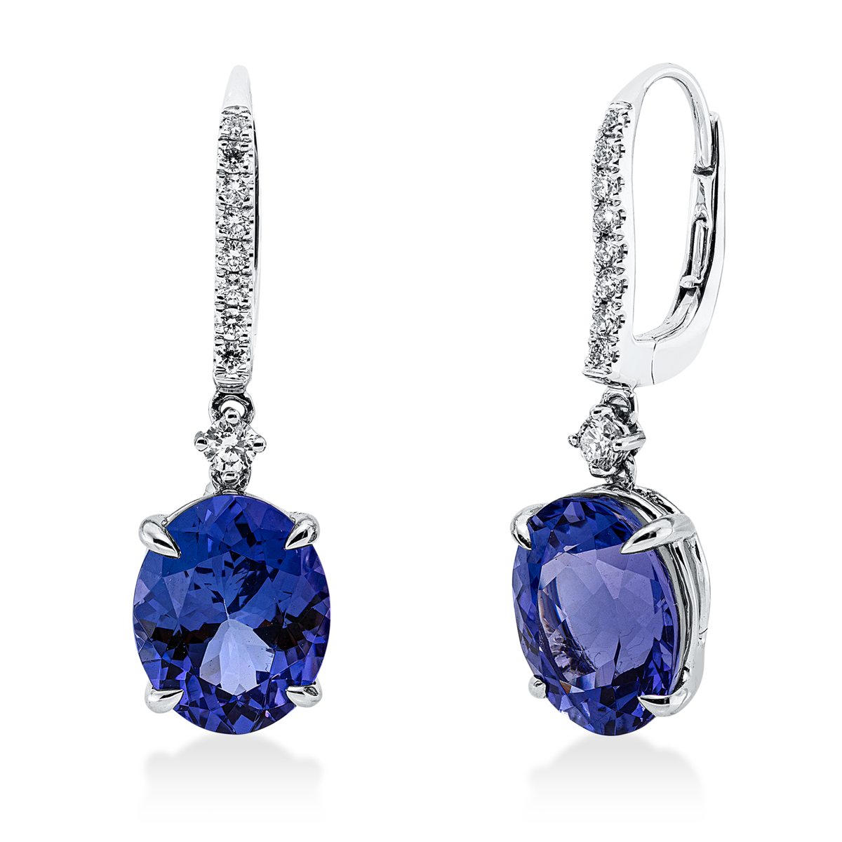 Ohrschmuck 18 kt WG, 18 Brillanten 0,25 ct, TW-si, 2 Tansanit 7,02 ct blau