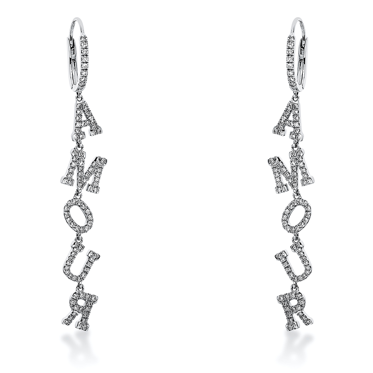 Ohrschmuck 18 kt WG AMOUR, 198 Brillanten 1,08 ct, TW-vsi/si, H:62,4 mm, B:11,2 mm, S:1,4 mm