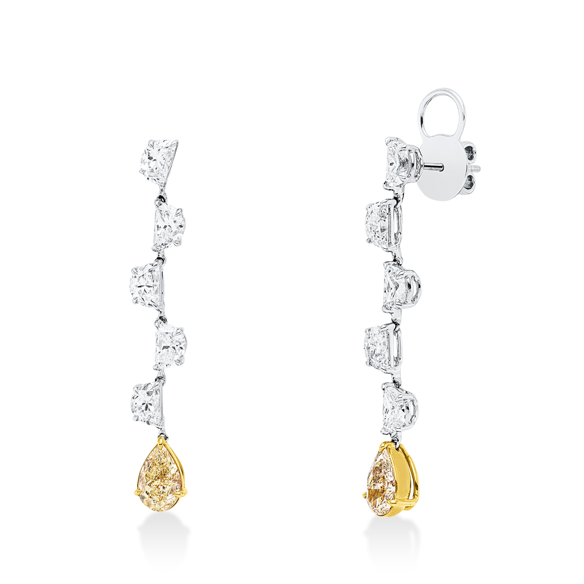 Ohrschmuck 18 kt WG+GG, GIA 2pcs, 1 Tropfen 1,03 ct, gelb-vs2, 1 Tropfen 1,11 ct, gelb-vs1, 10 Halbmond 3,82 ct, E-vvs/vs