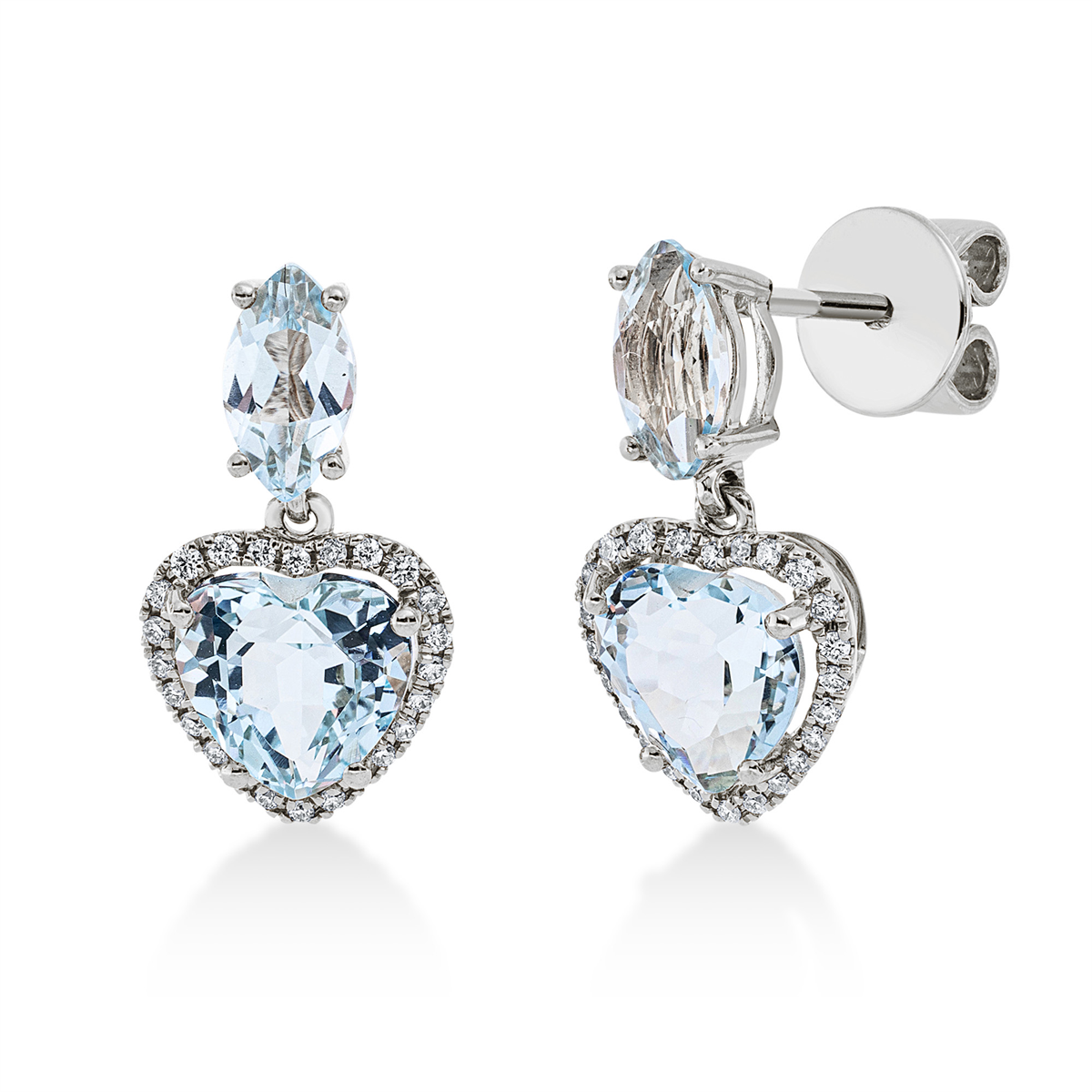 Ohrschmuck 3er-Krappe 18 kt GG Herz, 48 Brillanten 0,18 ct, TW-si, 2 Topase 3,30 ct sky blue, 2 Topase 1,10 ct sky blue