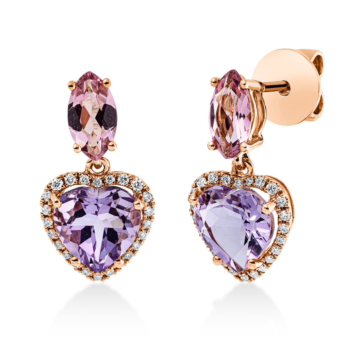 Ohrschmuck 3er-Krappe 18 kt RG Herz, 48 Brillanten 0,18 ct, TW-si, 2 Amethyste 2,60 ct pink, 2 Turmalin 1,00 ct pink