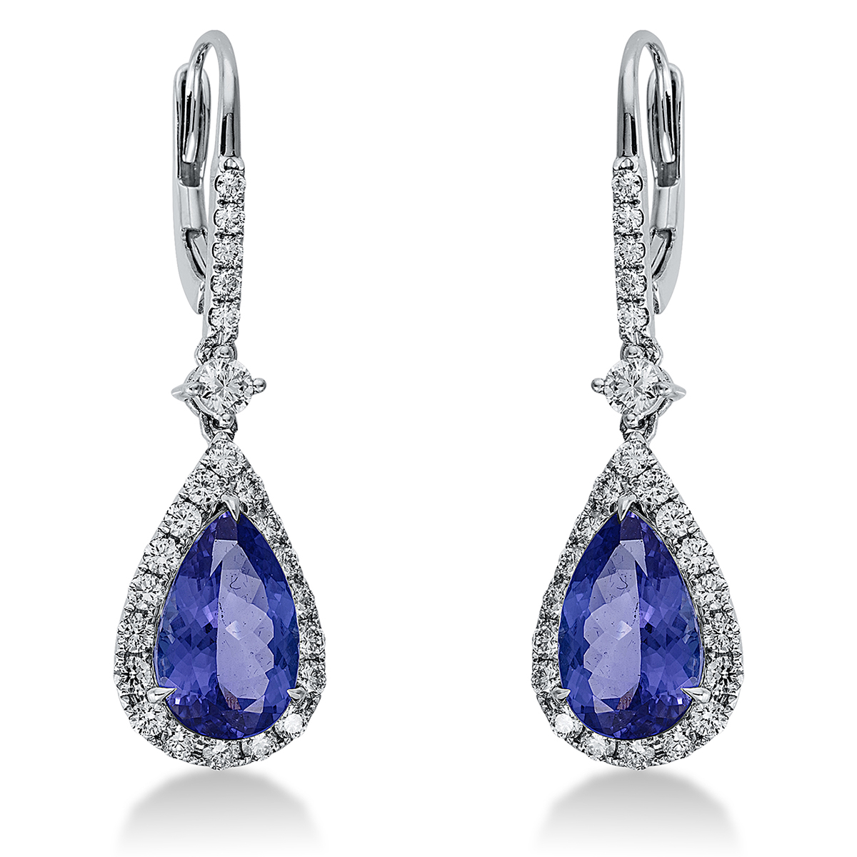 Ohrschmuck 3er-Krappe 18 kt WG, 46 Brillanten 1,25 ct, TW-si, 2 Brillanten 0,25 ct, TW-si, 2 Tansanit 7,59 ct blau, H:39,9 mm, B:11,5 mm, S:7,4 mm