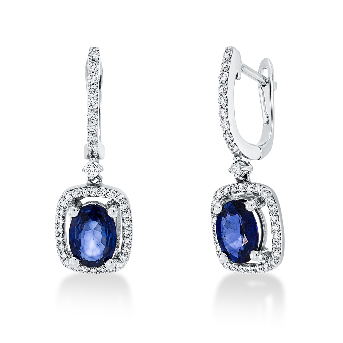 Ohrschmuck 4er-Krappe 18 kt WG, 76 Brillanten 0,38 ct, TW-vsi, 2 Saphire 1,35 ct blau