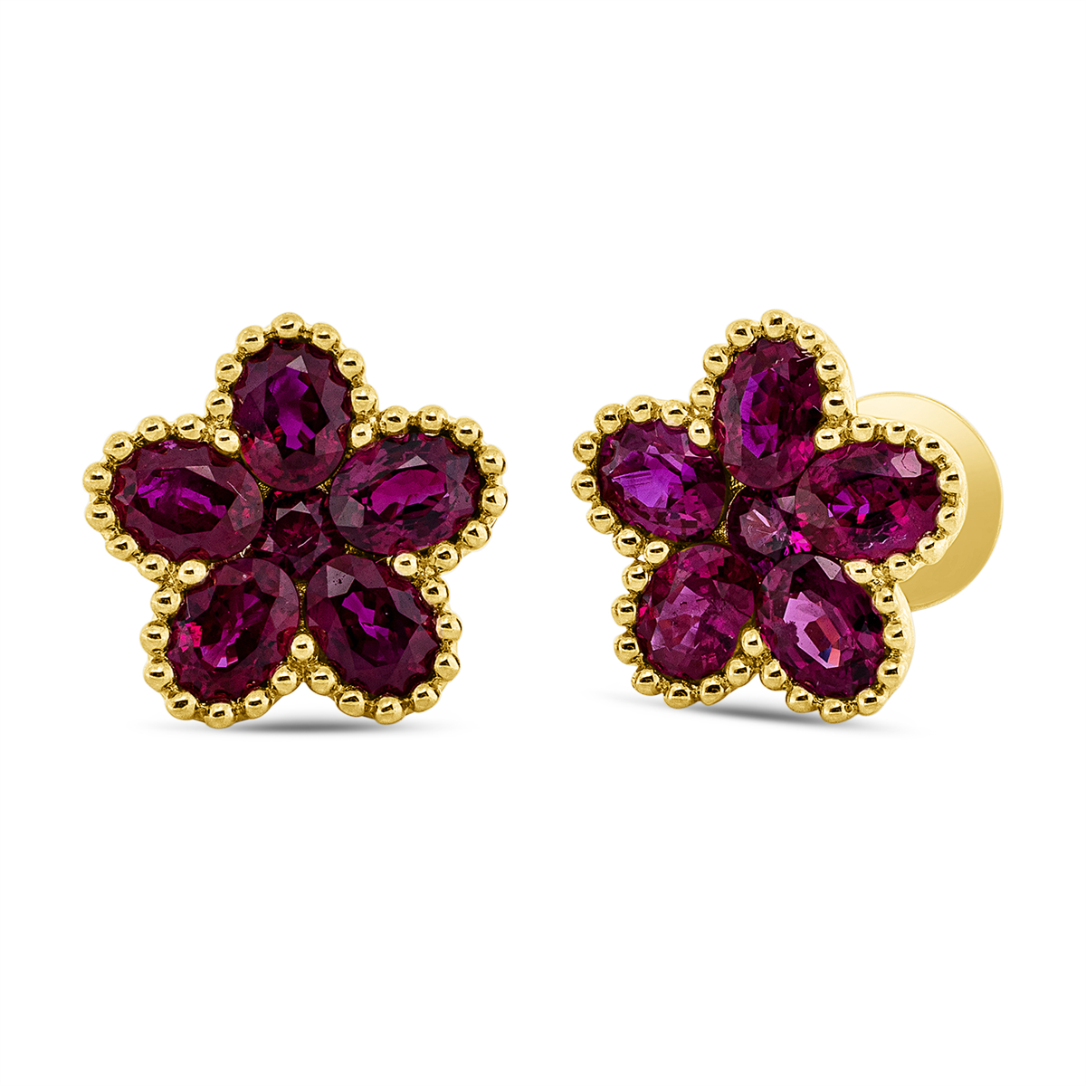 Ohrstecker 14 kt GG, 10 Rubine 2,04 ct rot, 2 Rubine 0,16 ct rot