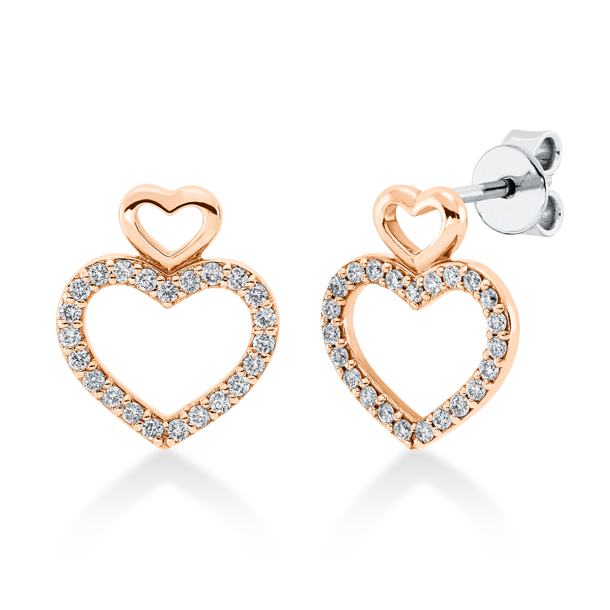 Ohrstecker 14 kt RG+WG Herz, 46 Brillanten 0,26 ct, TW-vsi/si, H:13,1 mm, B:10,9 mm