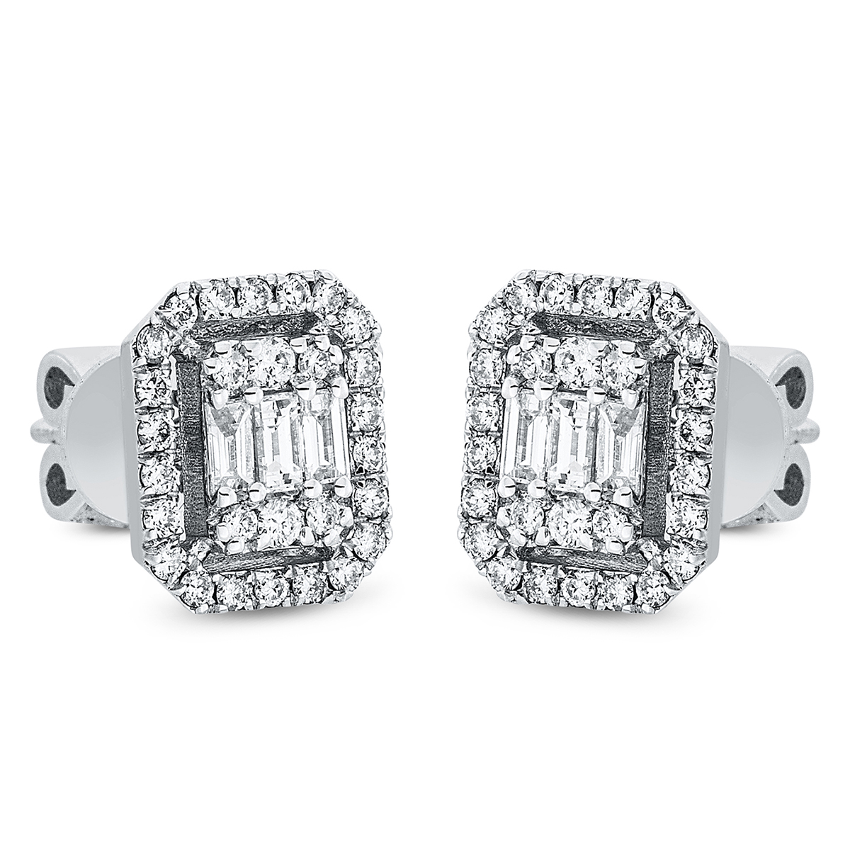 Ohrstecker 14 kt WG, 4 Brillanten 0,08 ct, F-vsi, 6 Baguette 0,23 ct, F-vsi, 52 Brillanten 0,38 ct, F-si