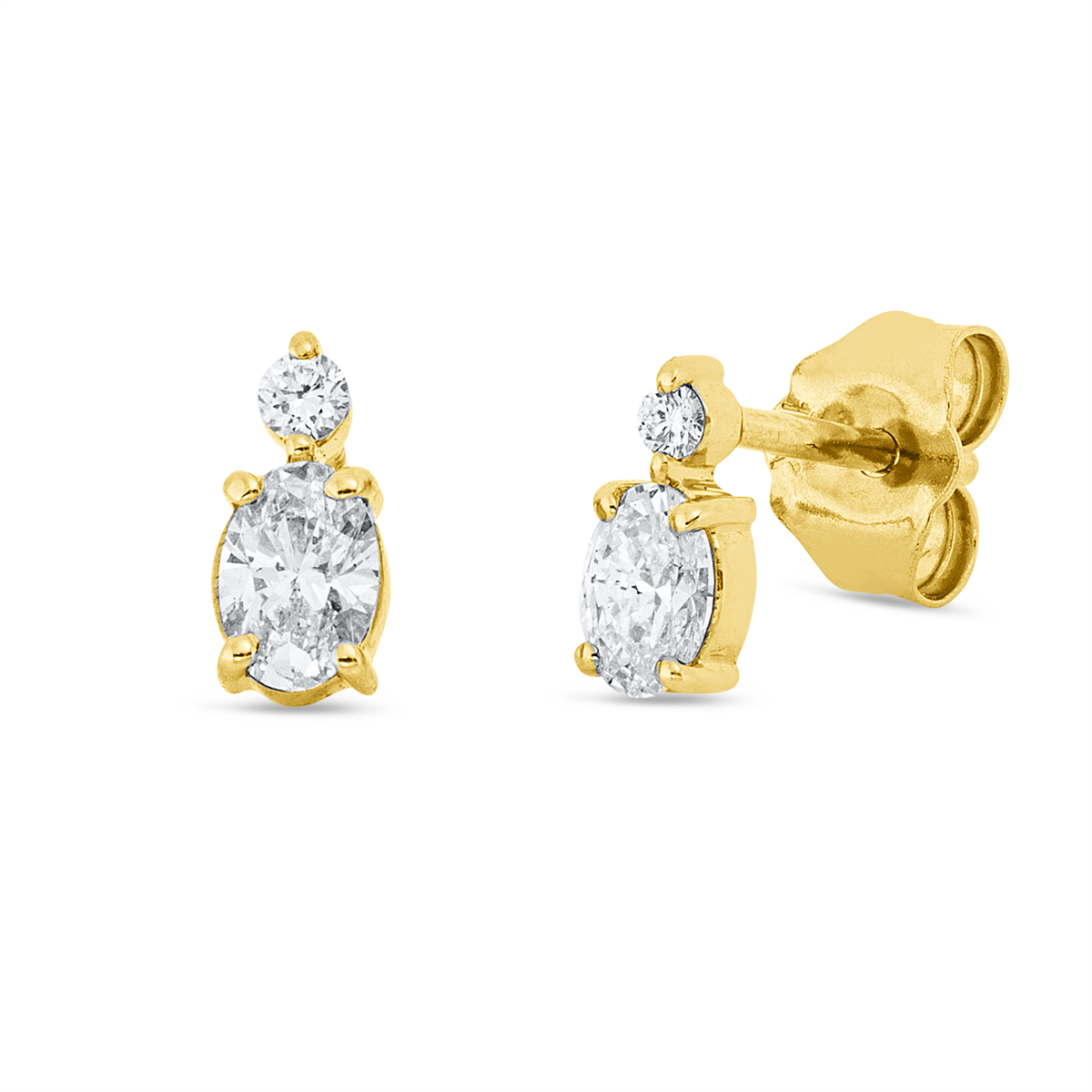 Ohrstecker 18 kt GG, 2 Oval 0,30 ct, TW-si, 2 Brillanten 0,03 ct, TW-si, H:6,7 mm, B:3,2 mm, S:2,3 mm