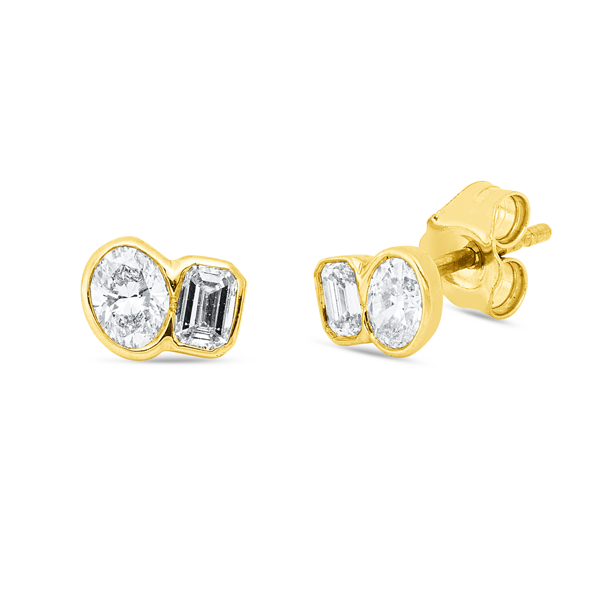 Ohrstecker 18 kt GG, 2 Sm.schliff 0,20 ct, TW-si, 2 Oval 0,30 ct, TW-si, H:4,9 mm, B:6,6 mm, S:2,0 mm
