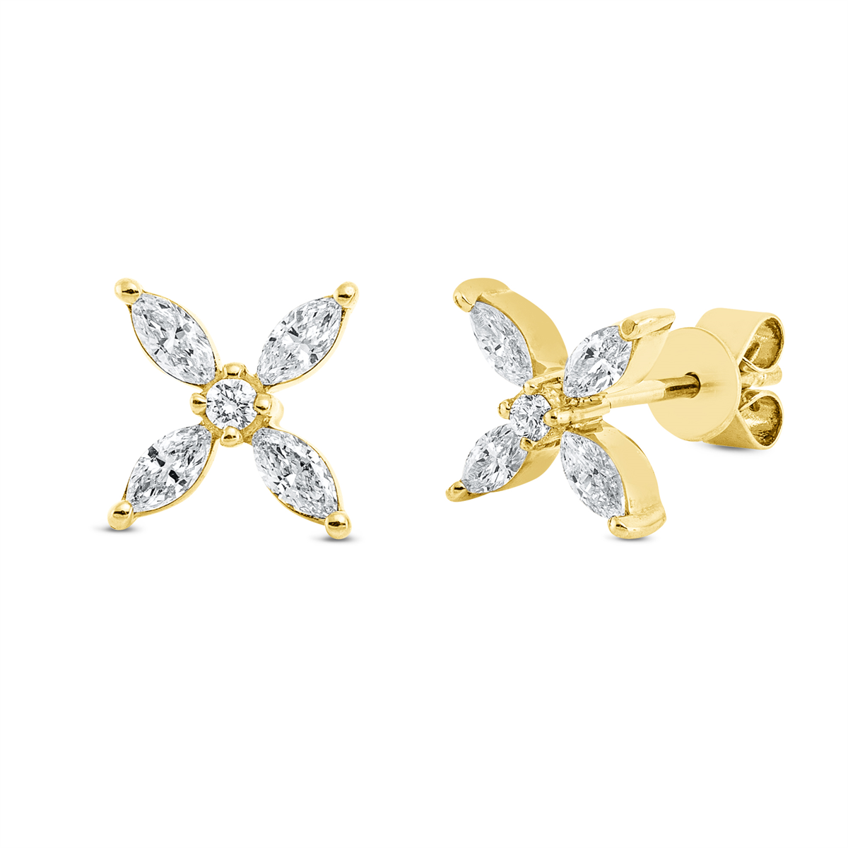 Ohrstecker 18 kt GG, 8 Navette 0,41 ct, TW-vsi, 2 Brillanten 0,04 ct, TW-si