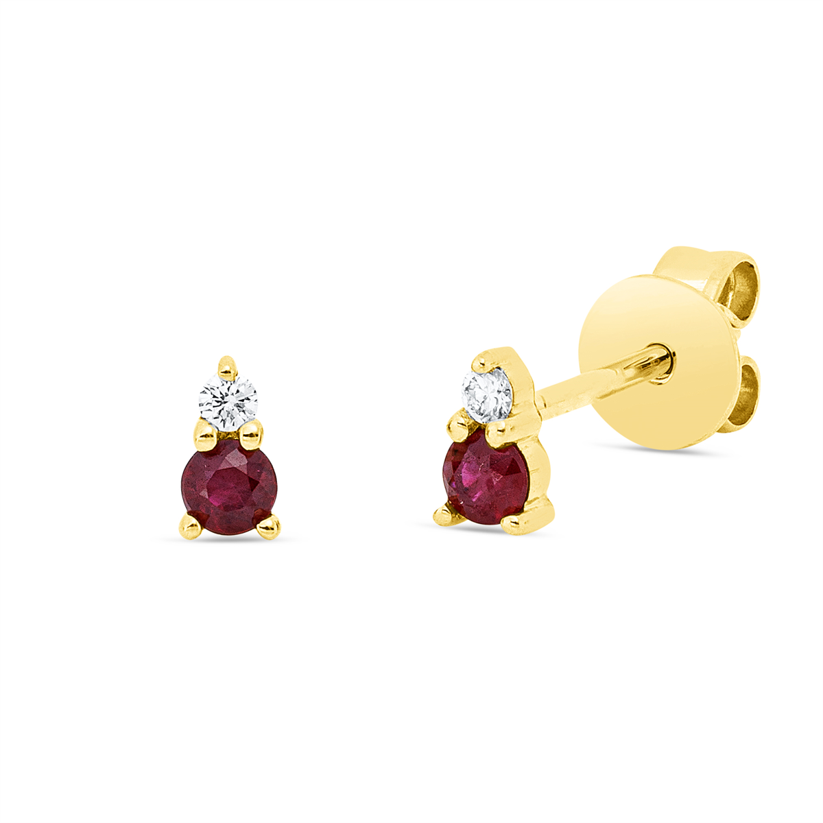 Ohrstecker 18 kt GG, 2 Brillanten 0,03 ct, W-si, 2 Rubine 0,13 ct rot, H:4,3 mm, B:2,3 mm, S:1,7 mm