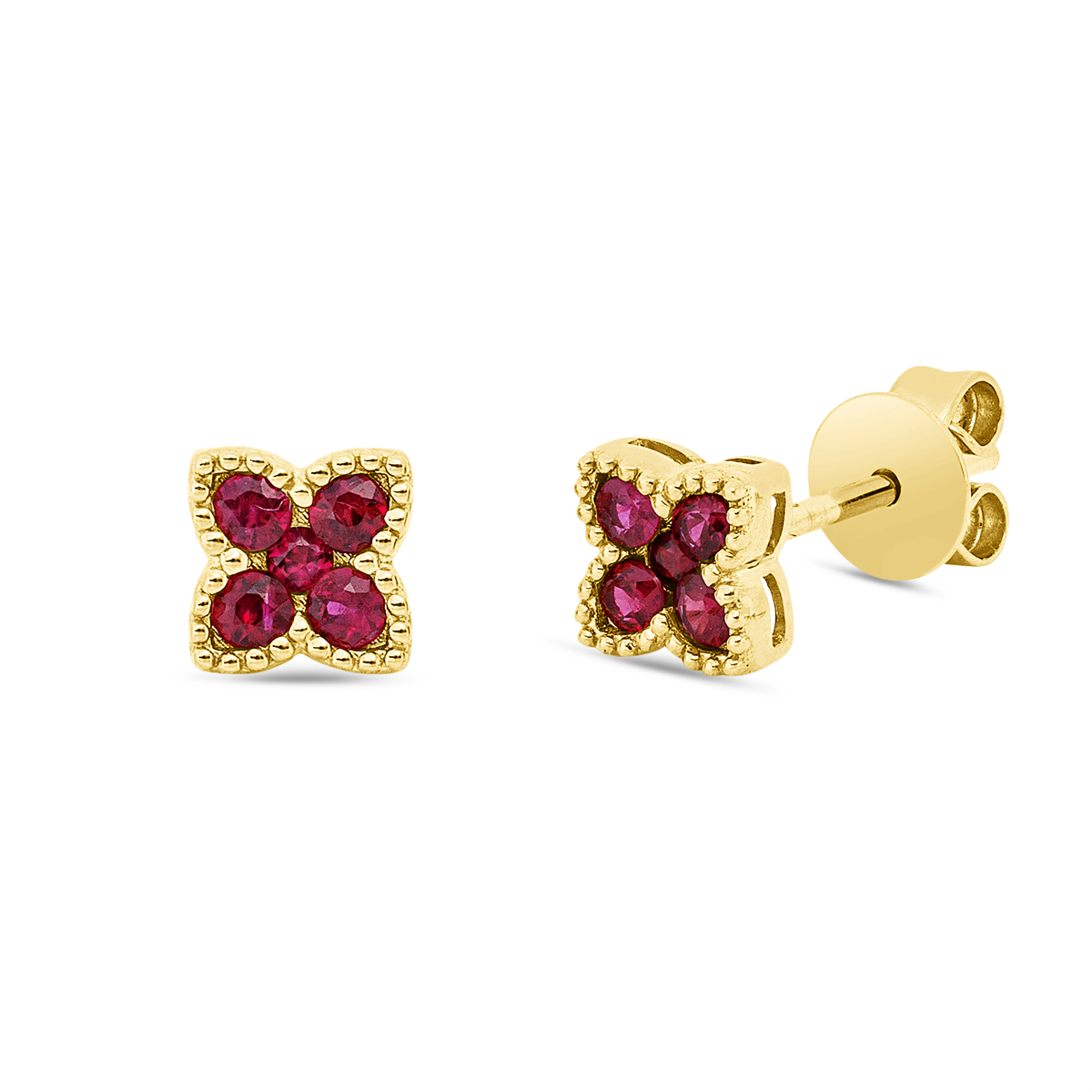Ohrstecker 18 kt GG, 10 Rubine 0,26 ct rot, H:4,6 mm, B:4,7 mm, S:2,3 mm