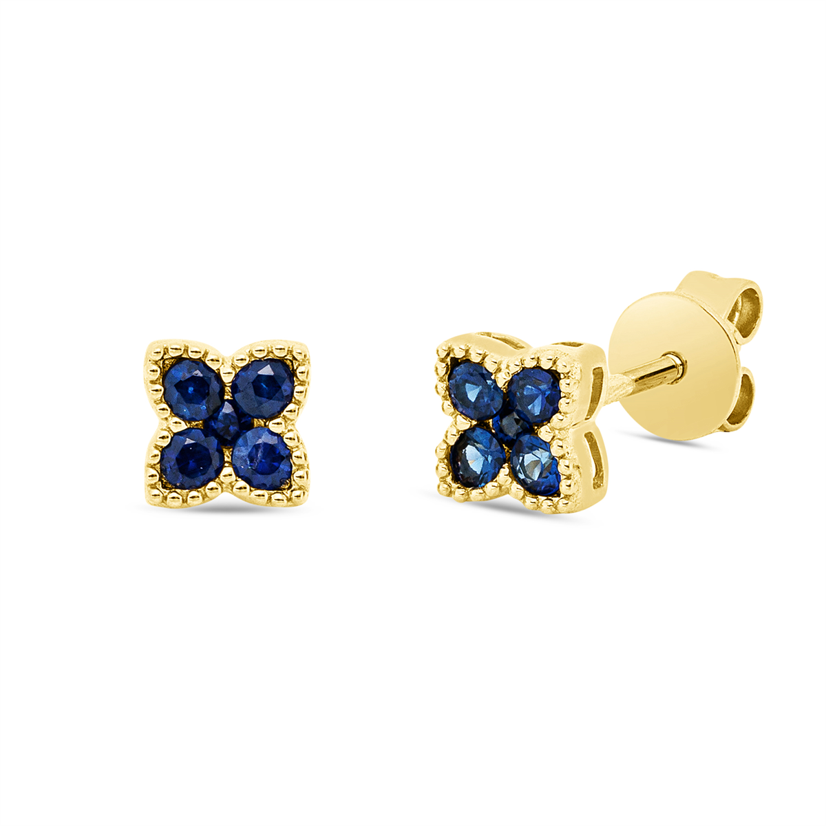 Ohrstecker 18 kt GG, 10 Saphire 0,31 ct blau, H:4,7 mm, B:4,7 mm, S:2,0 mm