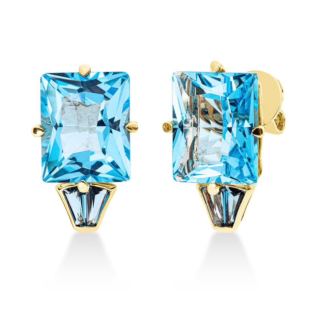 Ohrstecker 18 kt GG, 4 Topase 0,50 ct Lond. blue, 2 Topase 11,40 ct blau