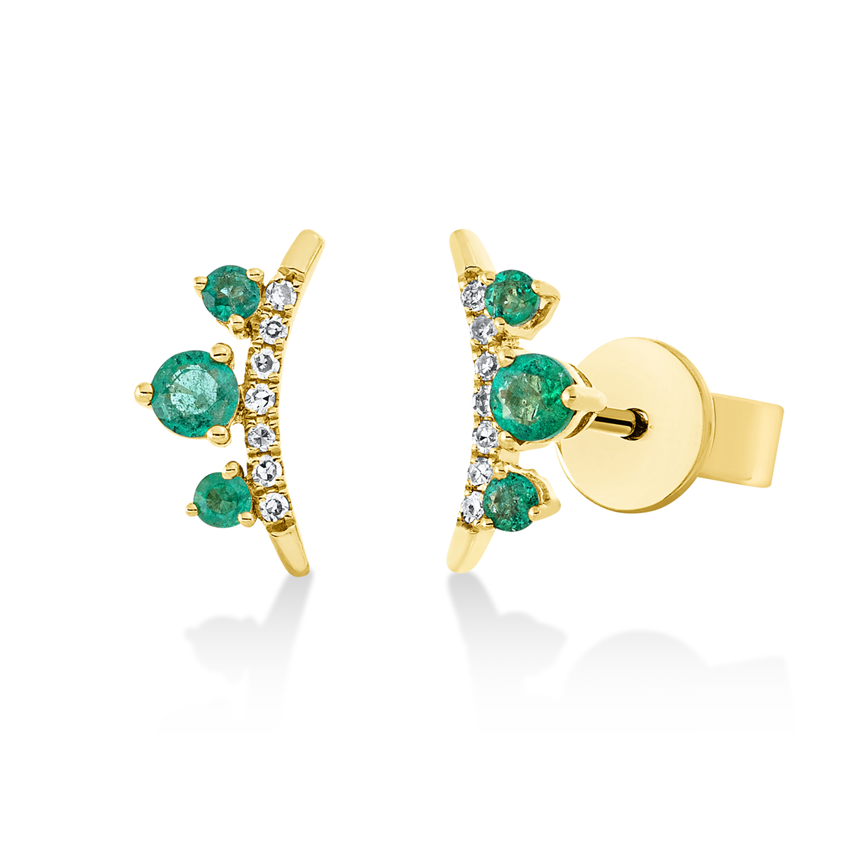 Ohrstecker 18 kt GG, 14 Diamanten 0,04 ct, W-si, 2 Smaragde 0,09 ct grün, 4 Smaragde 0,06 ct grün