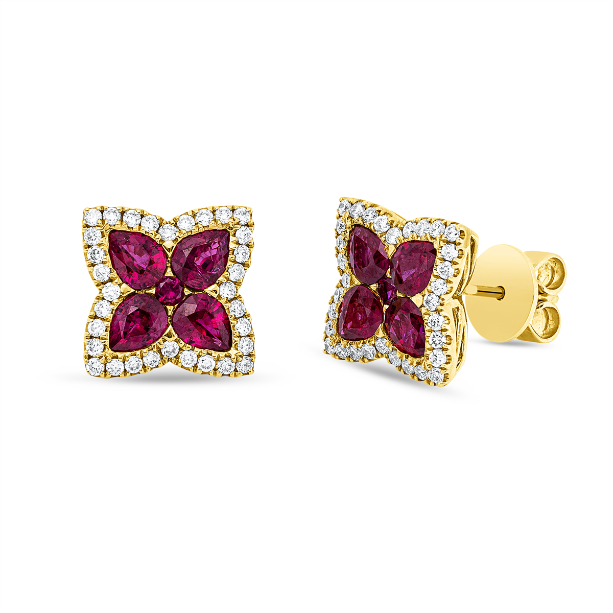 Ohrstecker 18 kt GG, 64 Brillanten 0,40 ct, TW-si, 8 Rubine 1,98 ct rot, 2 Rubine 0,07 ct rot