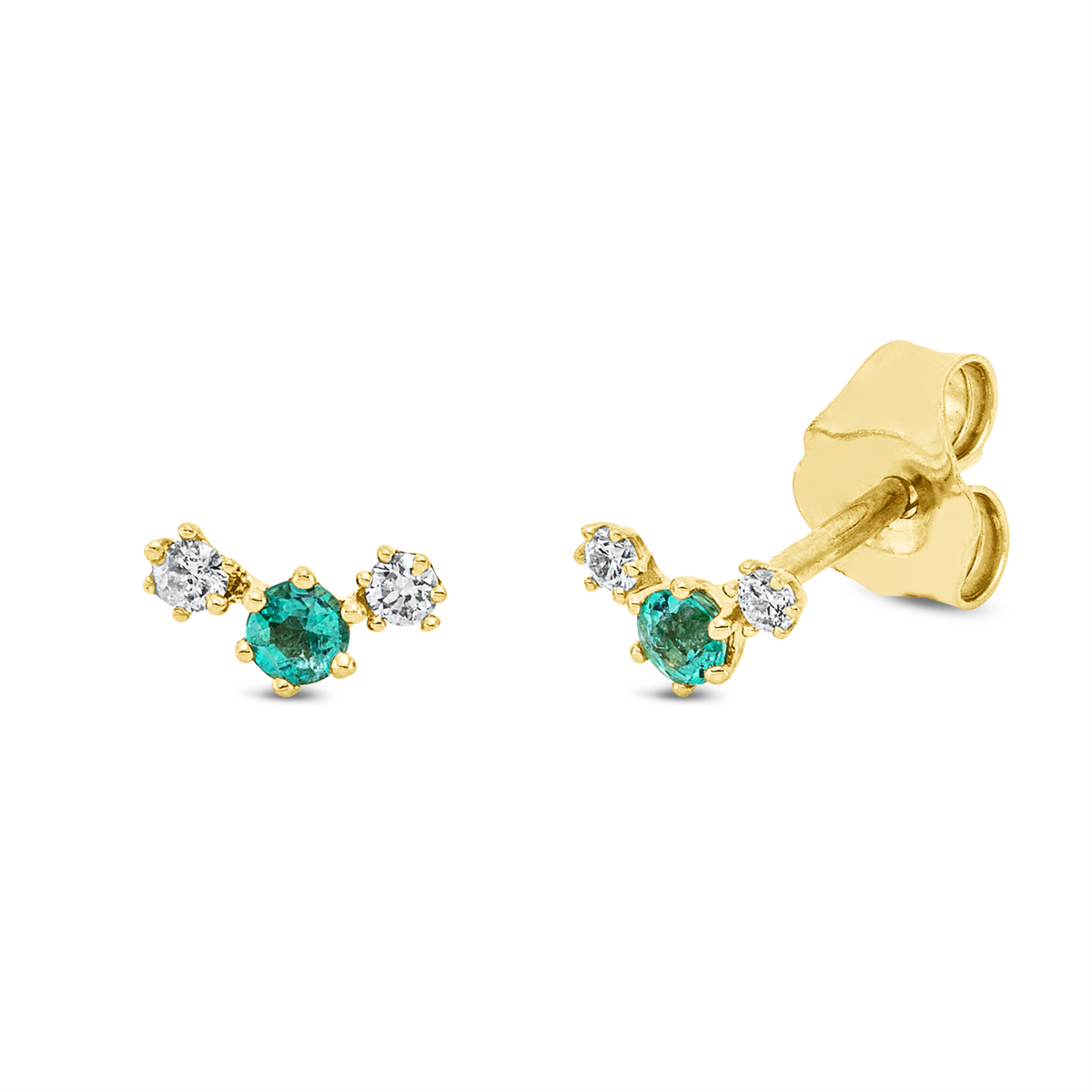Ohrstecker 18 kt GG, 4 Brillanten 0,05 ct, TW-si, 2 Smaragde 0,06 ct grün, H:3,2 mm, B:6,3 mm, S:1,4 mm