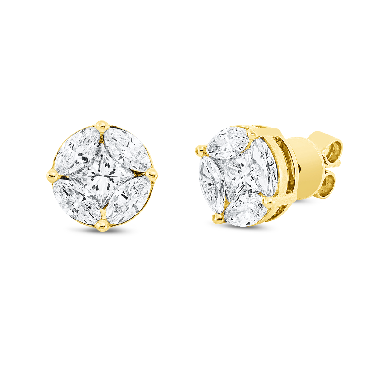 Ohrstecker 18 kt GG, 2 Princ. 0,65 ct, TW-si, 8 Navette 1,10 ct, TW-si