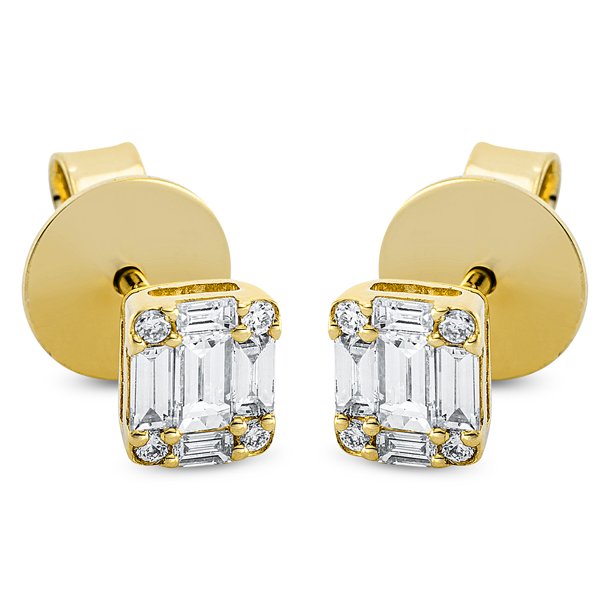 Ohrstecker 18 kt GG, 10 Baguette 0,36 ct, TW-si, 8 Brillanten 0,05 ct, TW-si, H:5,5 mm, B:4,7 mm, S:2,2 mm