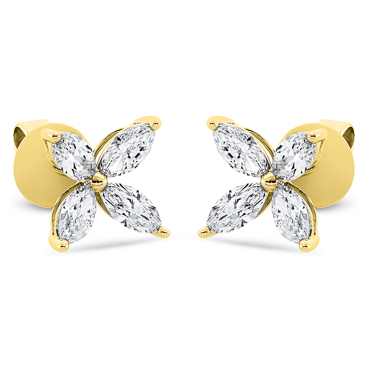 Ohrstecker 18 kt GG, 8 Navette 1,29 ct, TW-si, H:9,2 mm, B:9,2 mm, S:4,0 mm