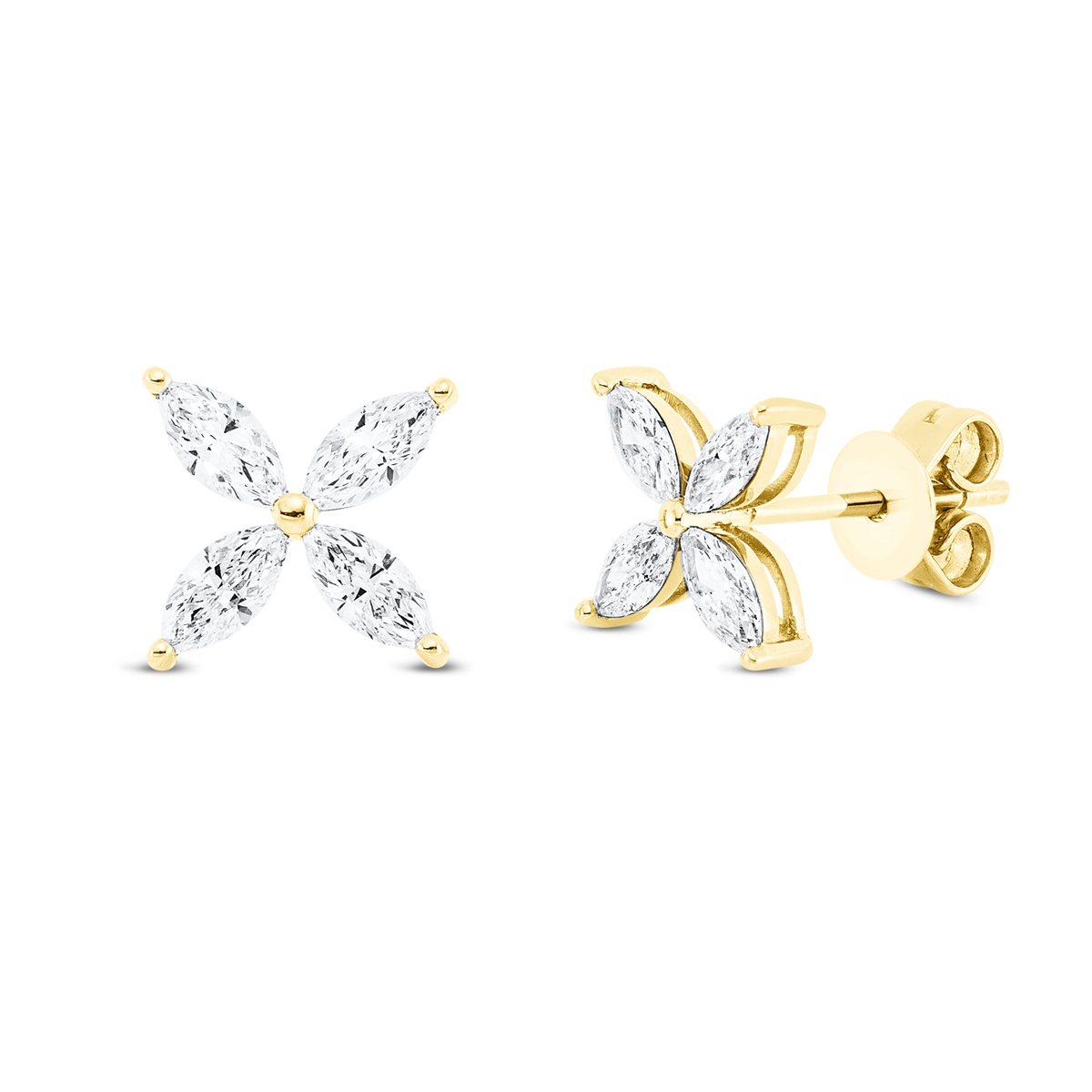 Ohrstecker 18 kt GG, 8 Navette 0,77 ct, TW-si