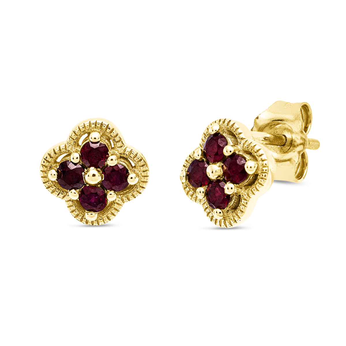 Ohrstecker 18 kt GG, 8 Rubine 0,32 ct rot, H:7,8 mm, B:7,8 mm, S:2,9 mm