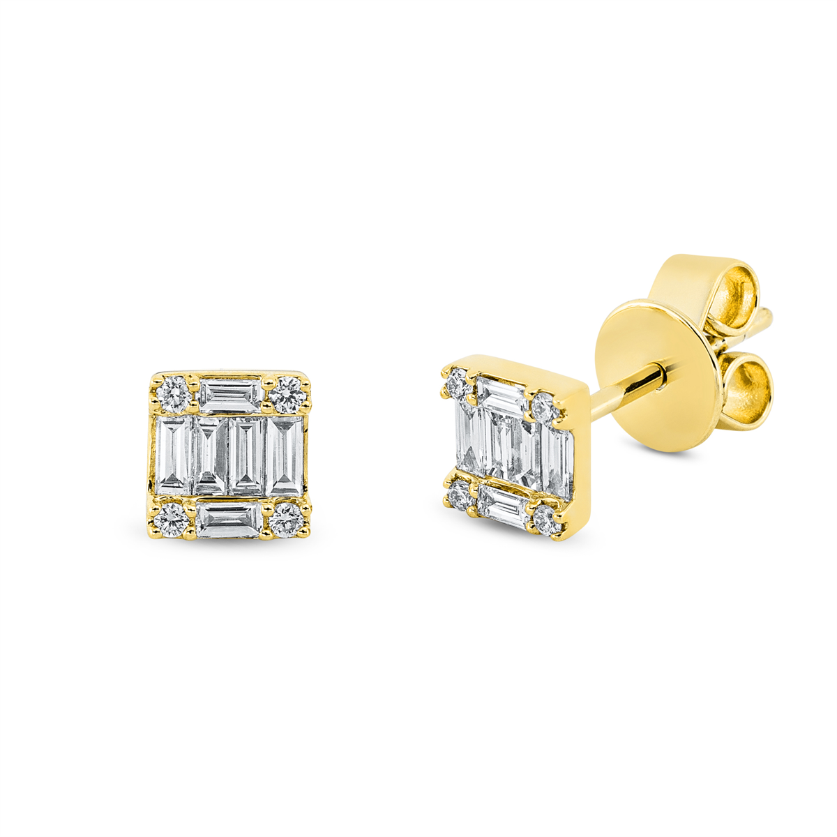 Ohrstecker 18 kt GG, 8 Baguette 0,15 ct, TW-si, 4 Baguette 0,06 ct, TW-si, 8 Brillanten 0,04 ct, TW-si
