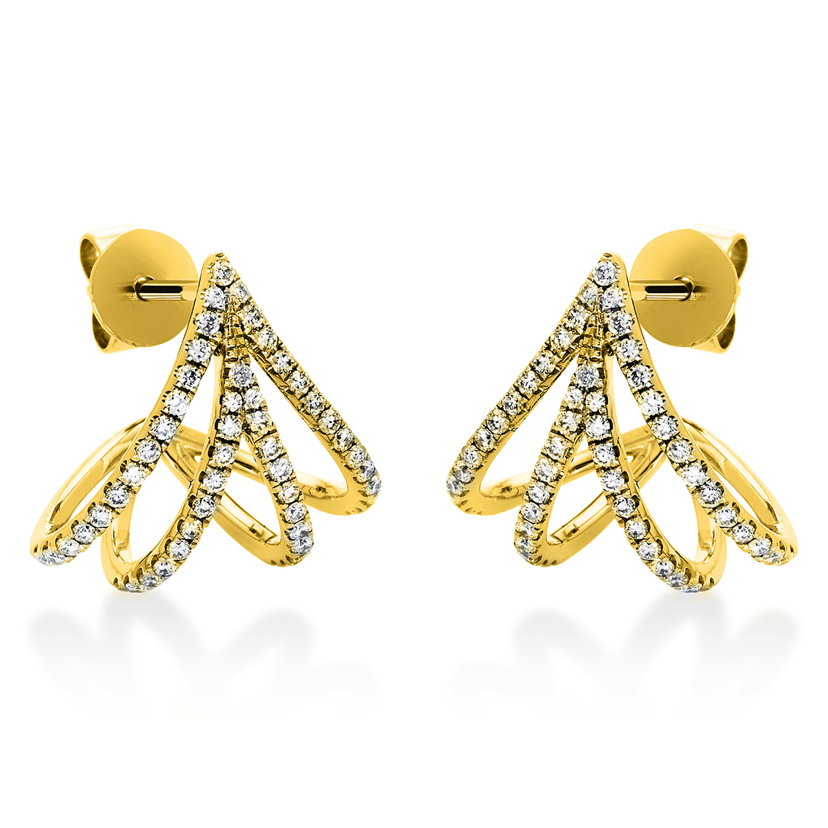 Ohrstecker 18 kt GG, 104 Brillanten 0,42 ct, TW-si, H:13,3 mm, B:13,7 mm, S:13,8 mm